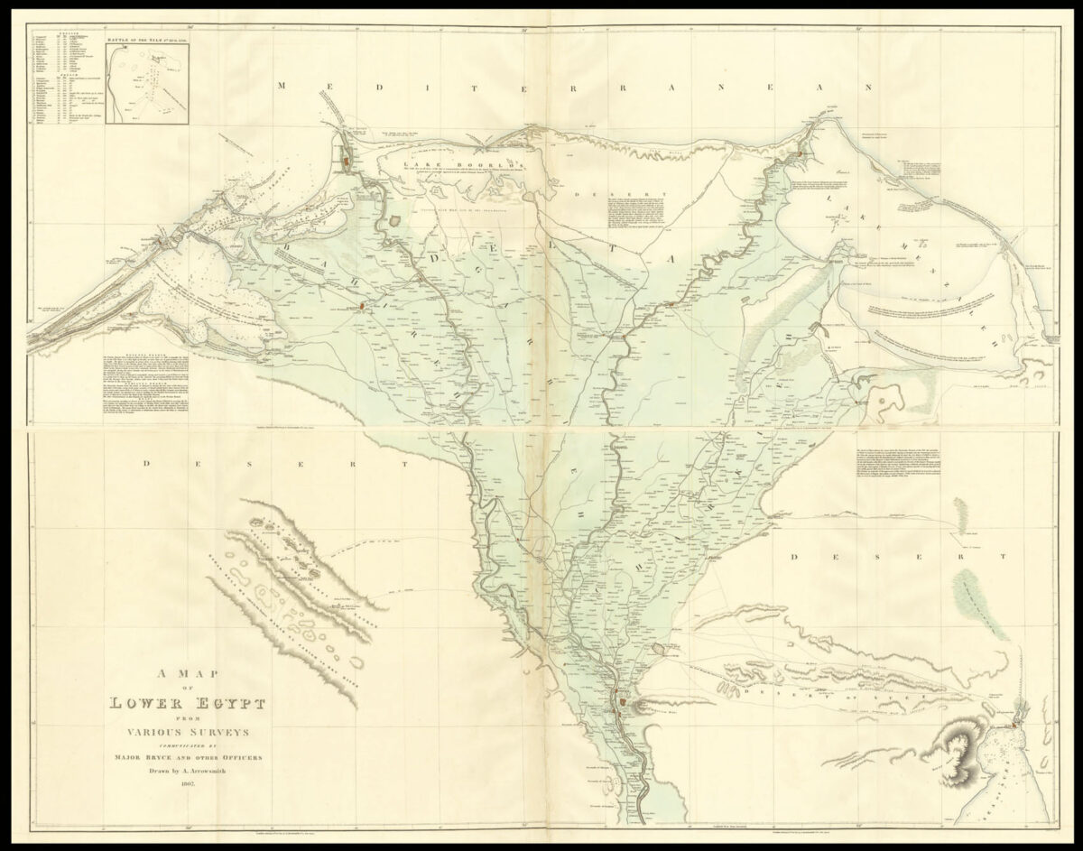 Two large and detailed maps of Egypt published just after the failed Alexandrian Expedition, a major operation during the Anglo-Turkish War of 1807-1809.
