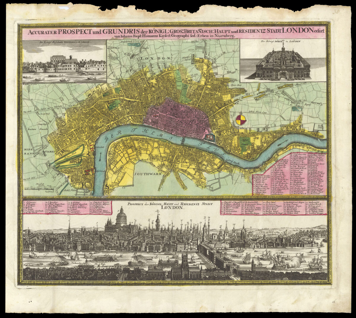 Accurater Prospect und Grundris der Königl: Gros-Britannisch Haupt und Residentz Stadt London.
