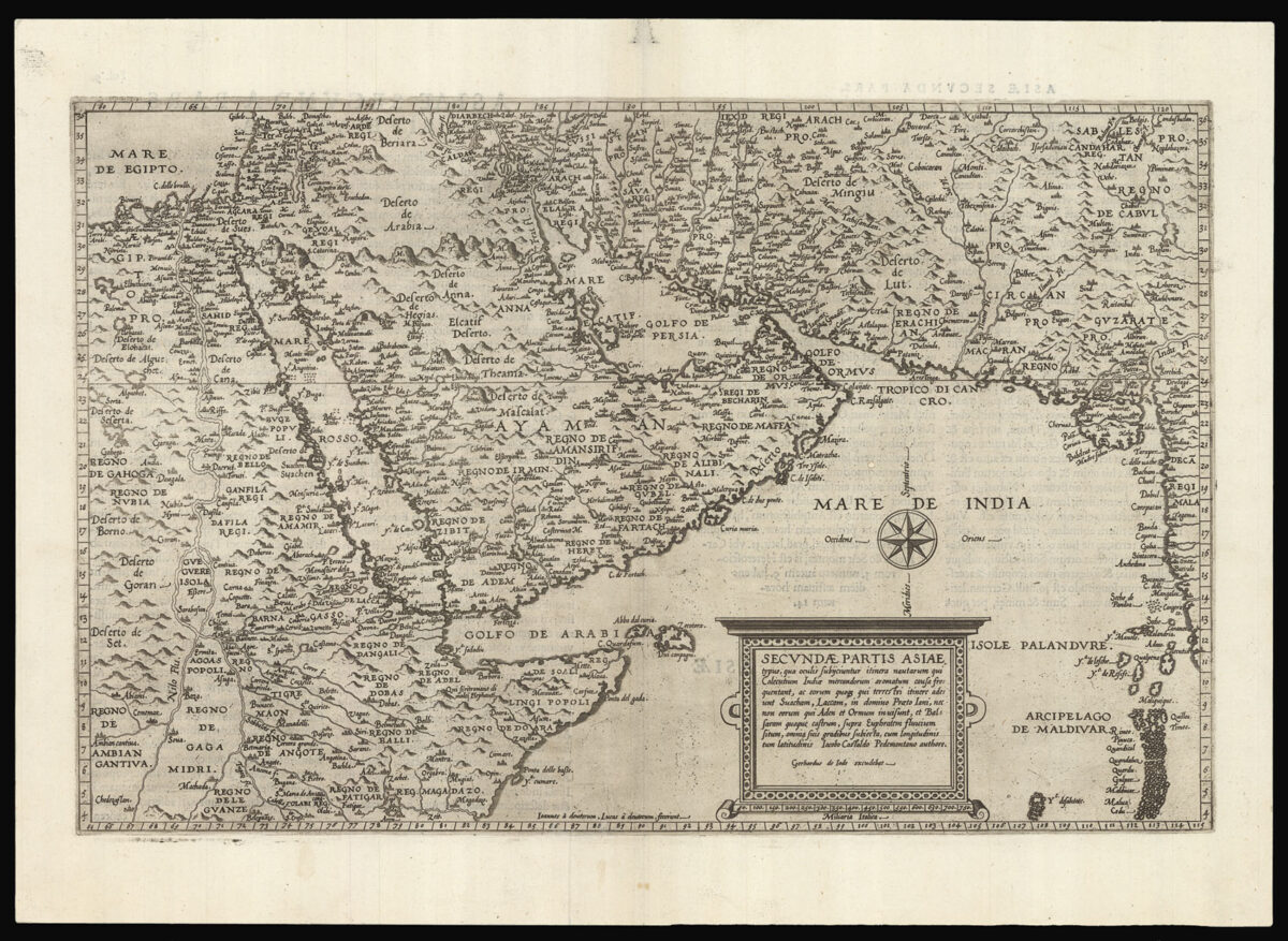 Gastaldi revitalised European mapping of the Middle East, producing a two sheet wall map of Arabia and the Indian Ocean and creating a series of maps of the region for his 1548 edition of Ptolemy. Gastaldi used new sources to give a more accurate picture of the area, and his cartography was used as the basis for maps by Abraham Ortelius, Corn...
