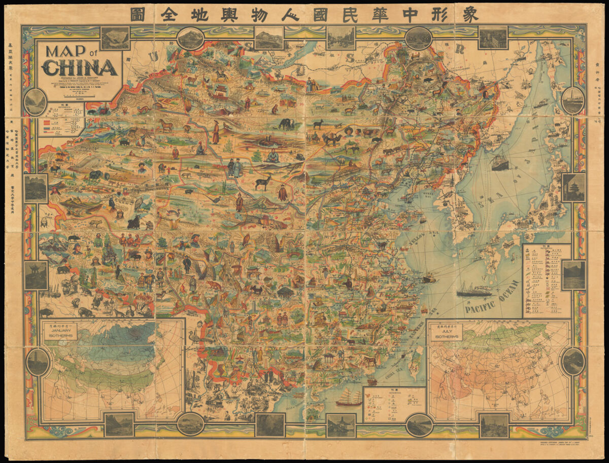 A splendidly illustrated pictorial map of China.