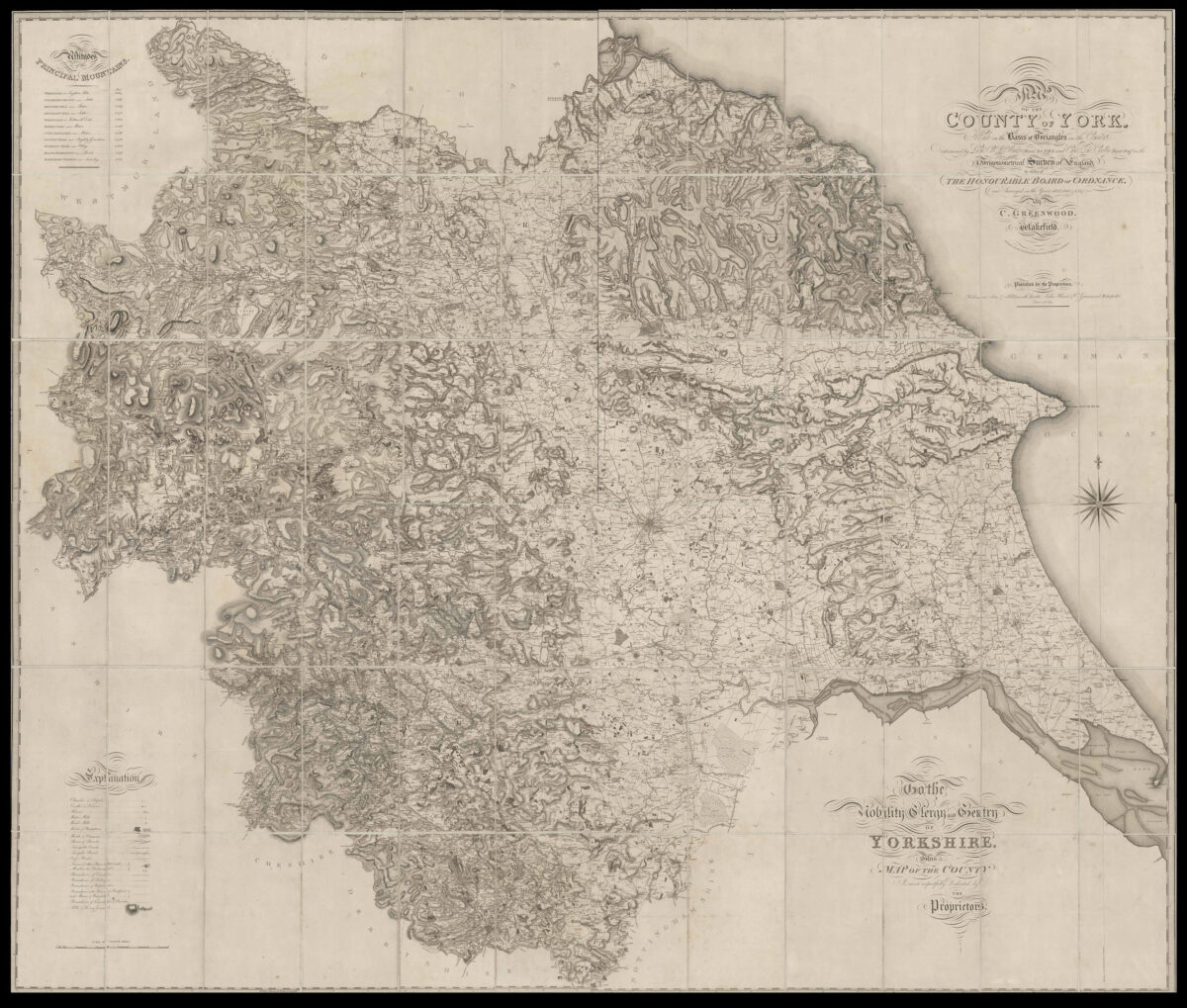 Made on the Basis of Triangles in the County, determined by Lieu. Col. Wm. Mudge, Royal Arty. F.R.S. and Captn. Tho. Colby, Royal Engrs. in the Trigonometrical Survey of England, by Order of the Board of Ordnance, and Surveyed in the Years 1815, 1816, & 1817, By C. Greenwood, Wakefield.