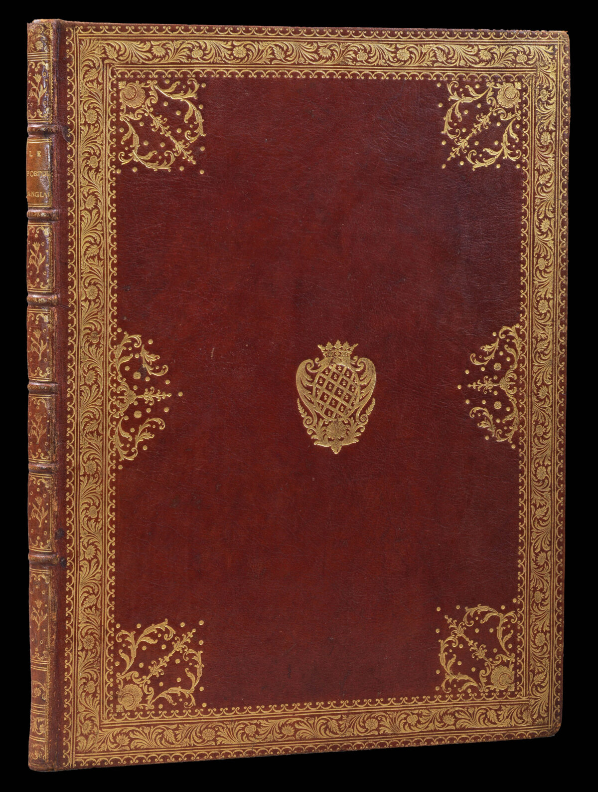 Folio (492 by 360mm), letterpress title and contents list, and nineteen engraved charts (all but one double-page), full red morocco, gilt fillet border, coat-of-arms of The Neuville family, spine in six compartments separated by raised bands, lavishly gilt, title lettered in gilt to spine.