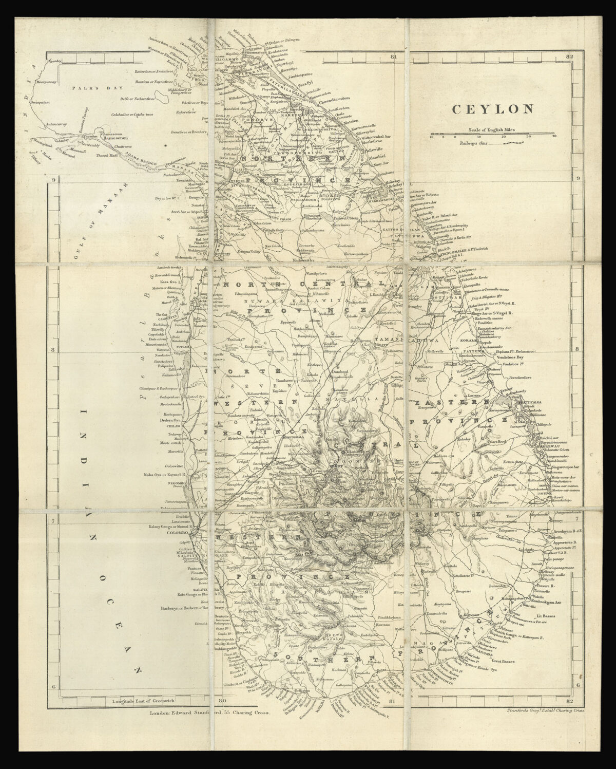 A rare uncoloured copy of Stanford's map of Sri Lanka, based on the earlier work of Aaron Arrowsmith.