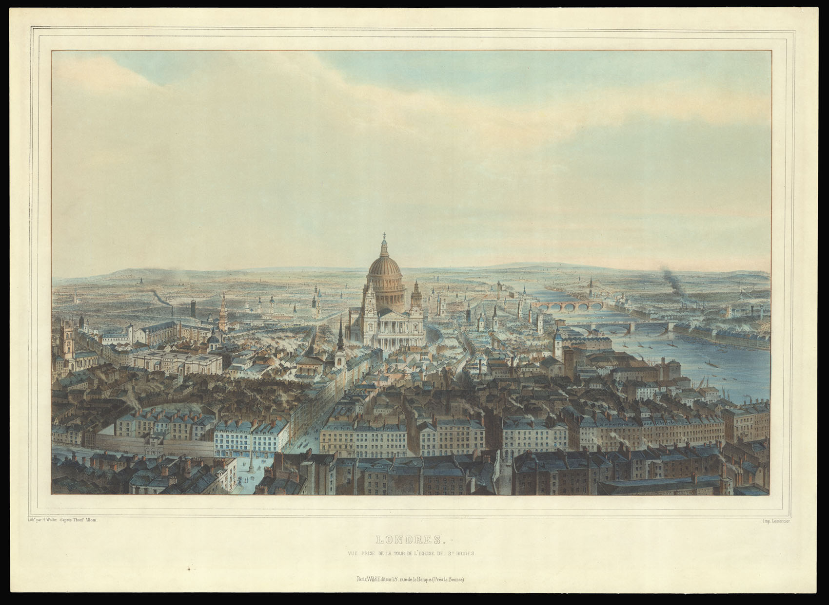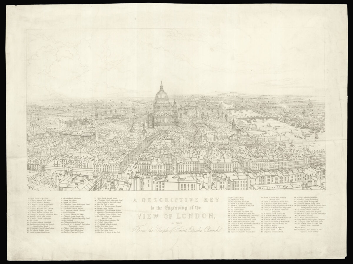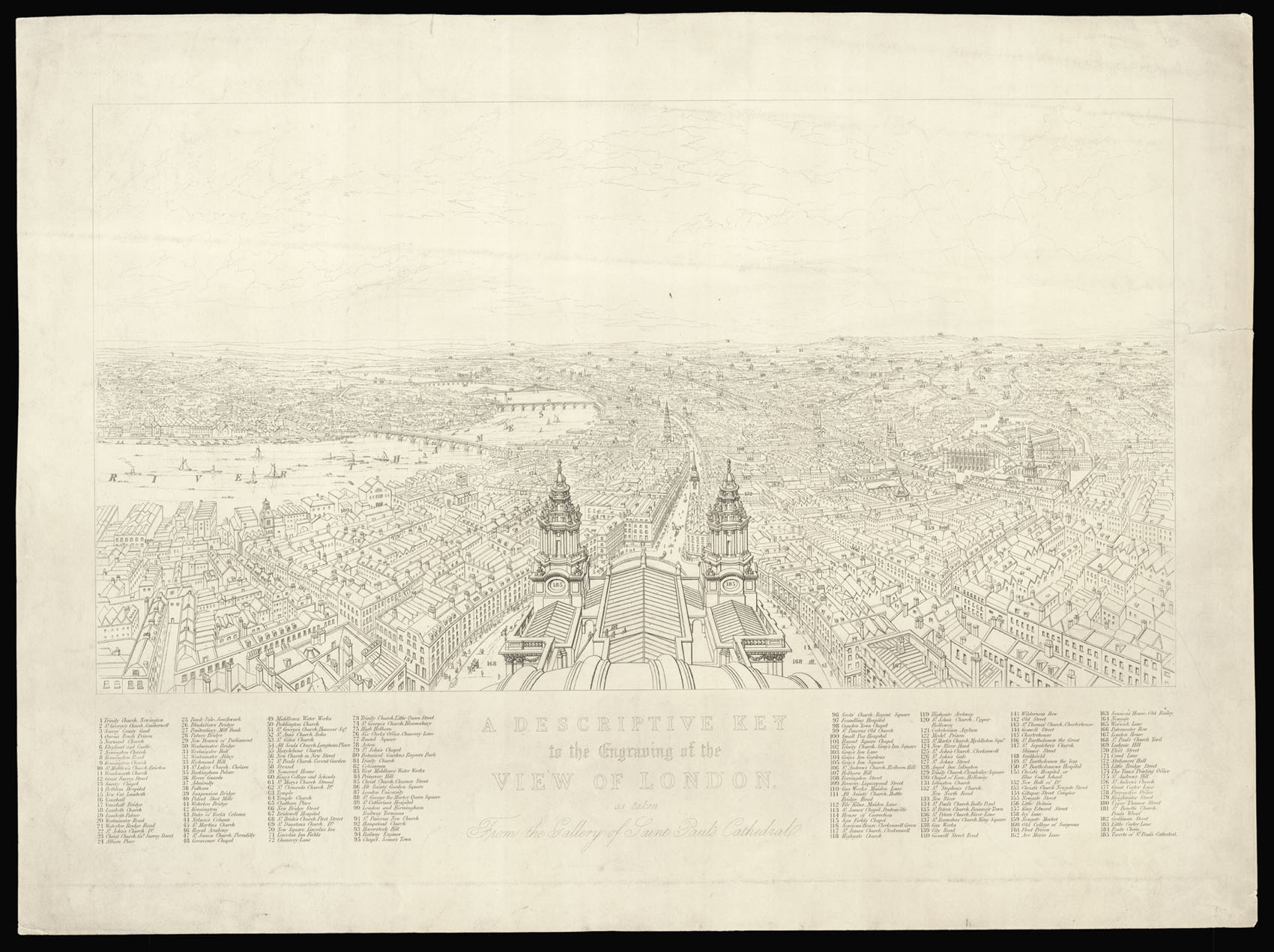 [1] Londres, Vue Prise de la Tour de l'Eglise de St Brides [2] A Descriptive Key to the Engraving of the View of London as taken From the Steeple of Saint Brides Church [3] A Descriptive Key to the Engraving of the View of London as taken From the Gallery of St Paul's Cathedral.