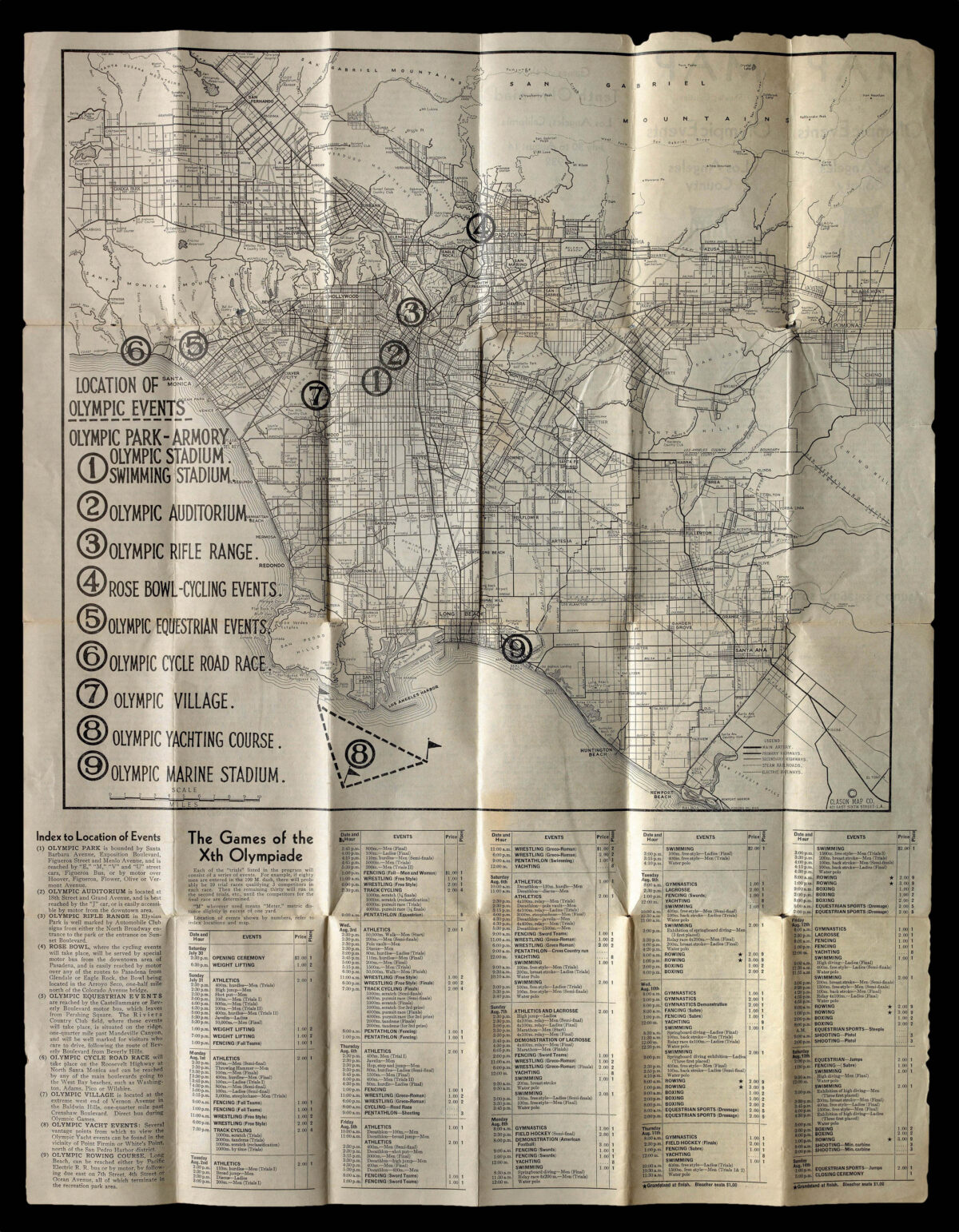 A tourist's map and guide to the 1932 Los Angeles Olympic games.