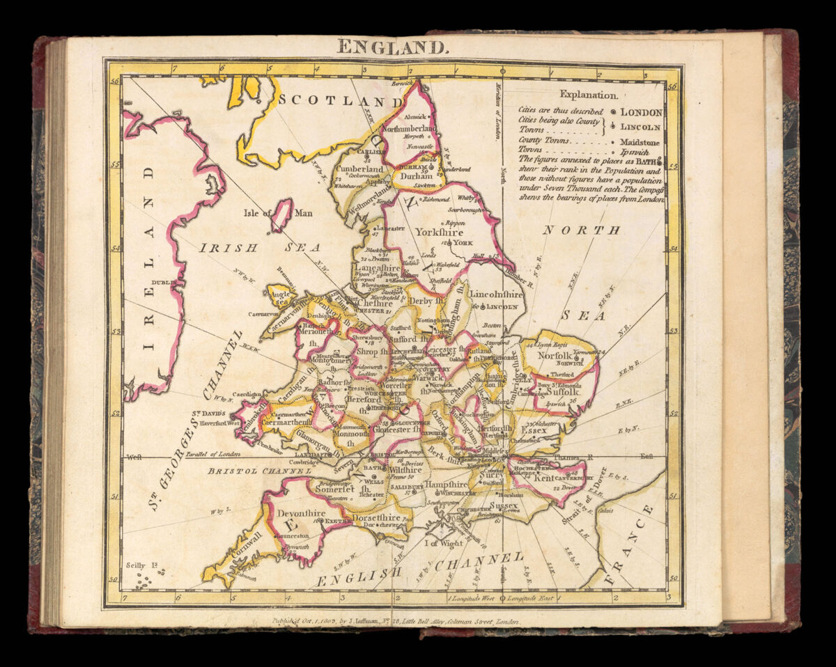 Rare. Luffman's unusual miniature atlas of England and Wales, with each county depicted within a circular frame.