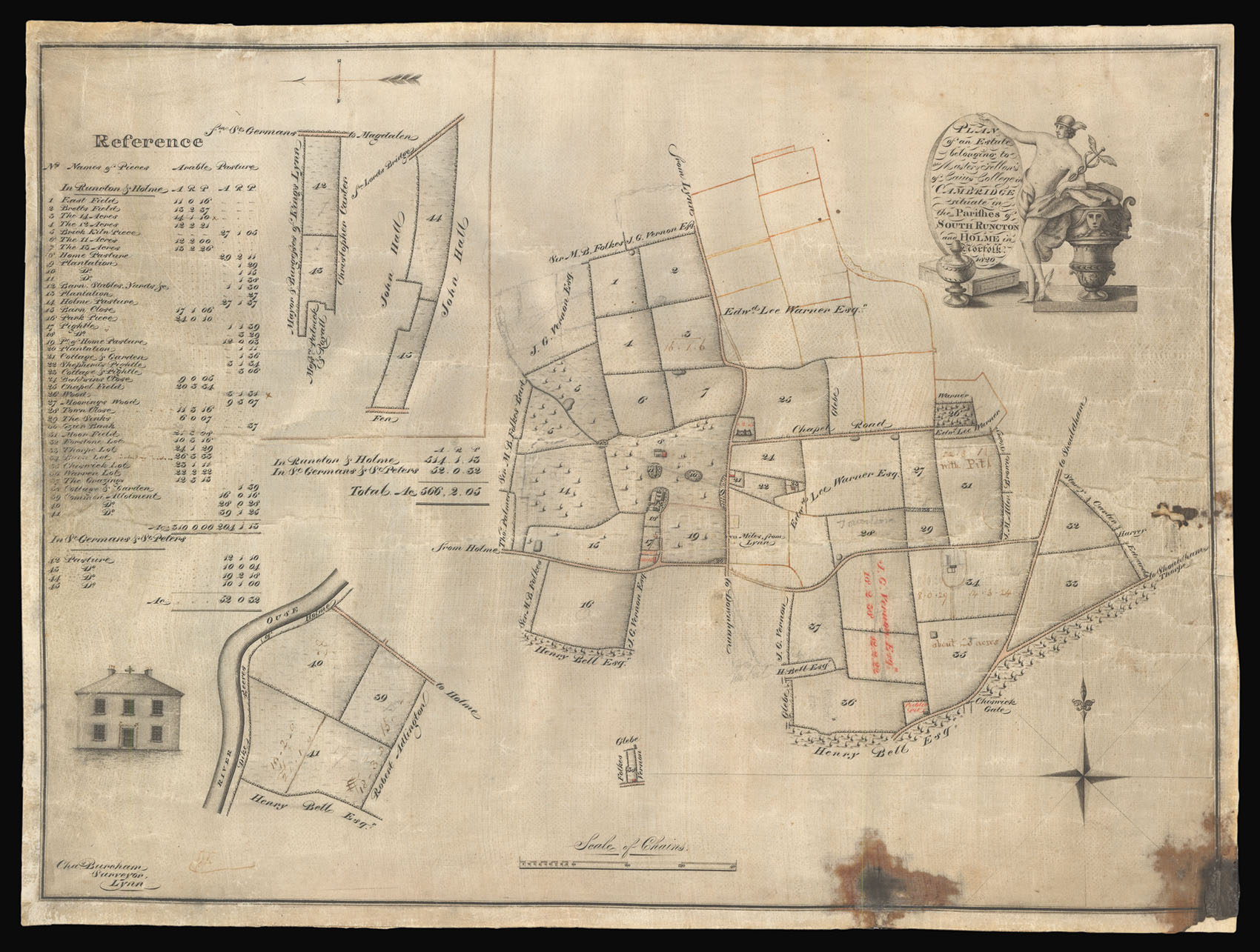 Norfolk – Manuscript plan of lands owned by Caius College in South Runcton