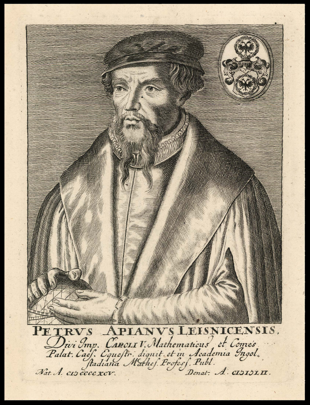 Based on Philippe Galle's portrait of Petrus Apianus from 1572, the present portrait of the cartographer was made by German printmaker Wolfgang Philipp Kilian and published in 1728. It shows the original image of Apianus wearing robes and holding an orb, but Kilian has also added a device in the upper right-hand corner and Latin text beneath the image listing his many accomplishments. ...