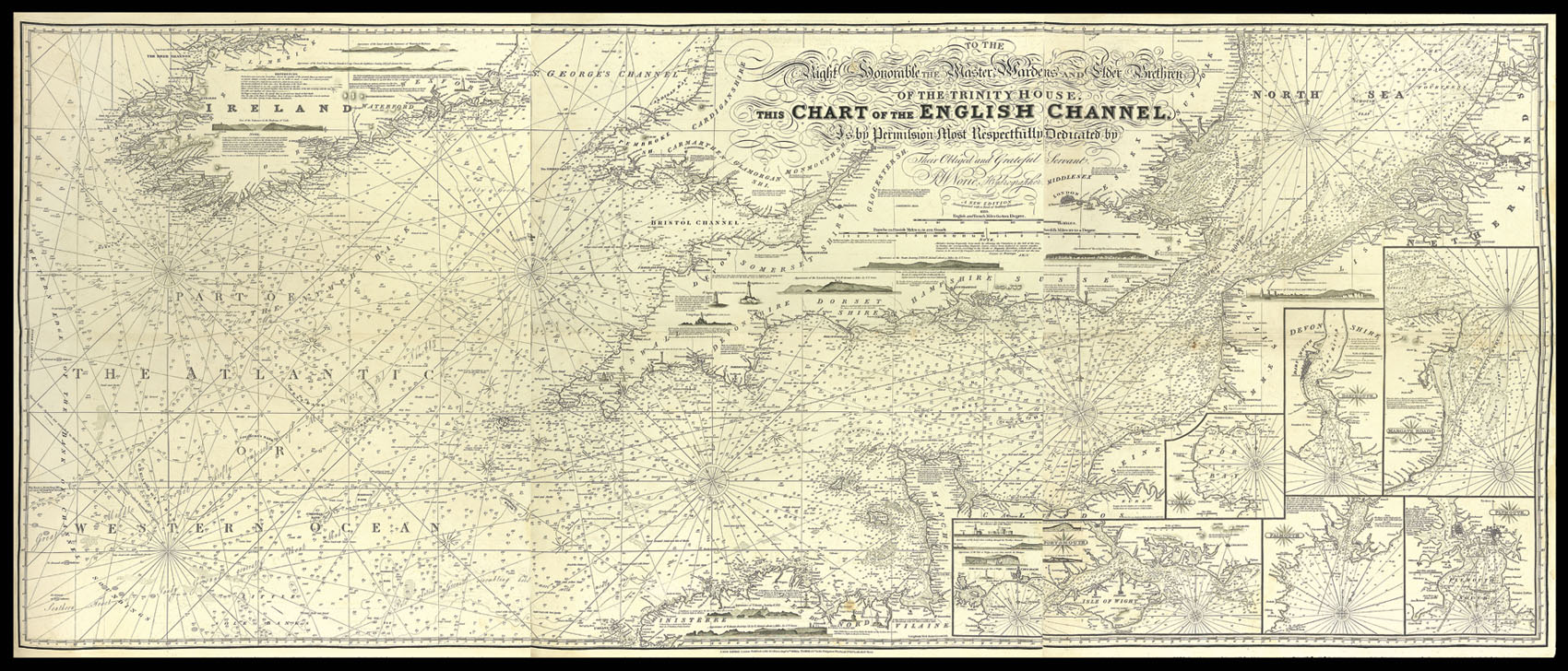 2) "To the Right Honourable the Master Warden and Elder Brethren of the Trinity House This Chart of the English Channel is by permission most respectfully dedicated... A new edition". 1839, with additions to 1840. 3 double-page sheets, unjoined, with seven insets.