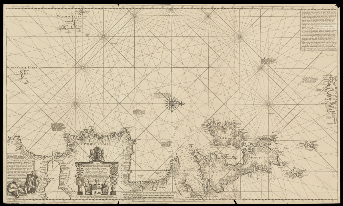 Nieuwe Groote en Curjeuse Gelyk Gradige Paskaart vant Westelykste deel der Zee Kusten van Europa,