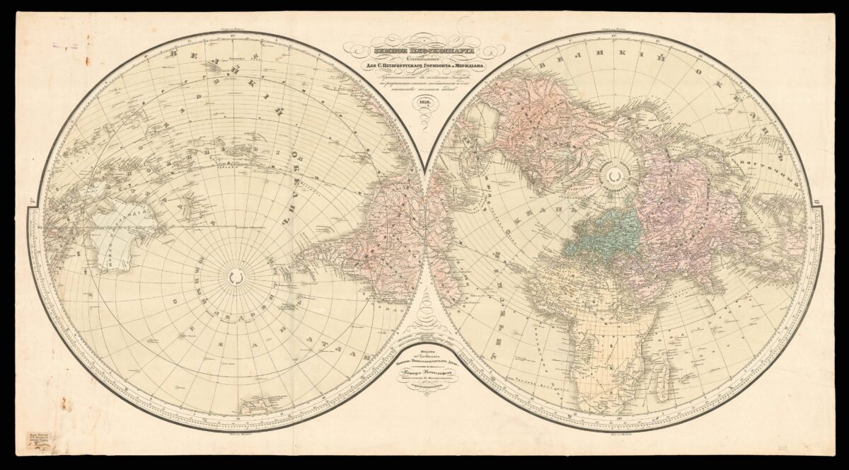 A rare Russian world map, produced during the reign of Tsar Nicolas I.