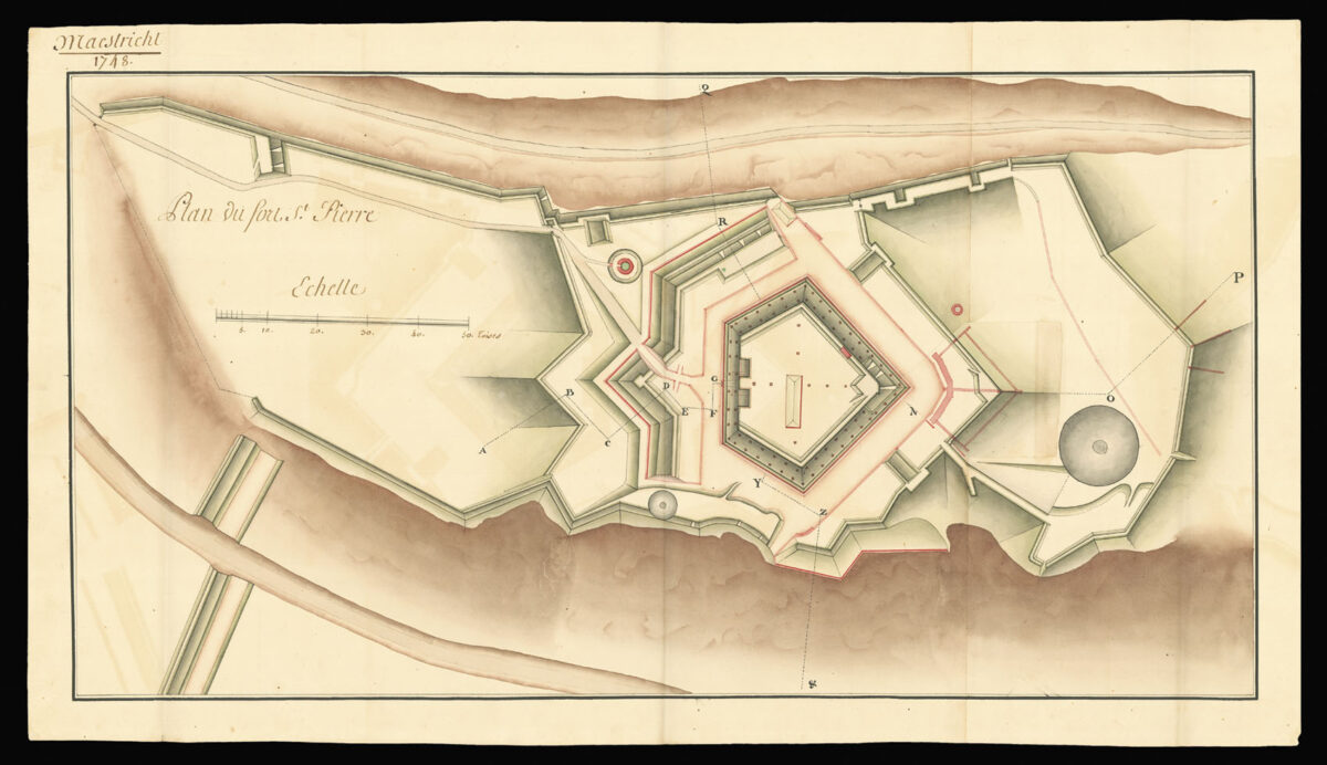The plan represents the fort on top of the mountain of Saint Pierre overlooking Maastricht.
