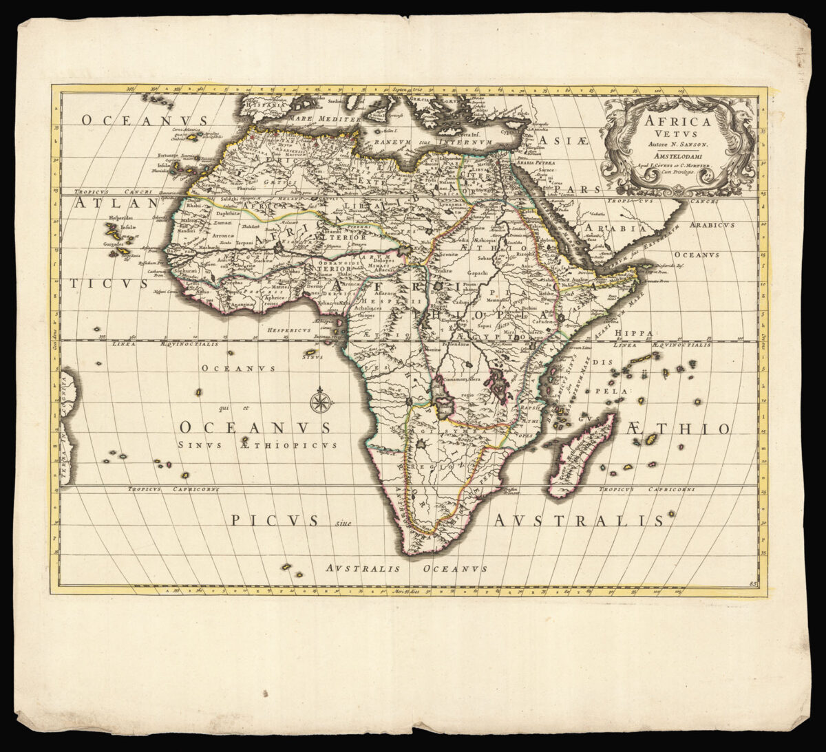 The map is one of a series that Sanson produced depicting parts of the ancient world. The map shows Africa (although of a modern shape) prior to the European discoveries. The interior follows Ptolemy and other antiquarian sources.