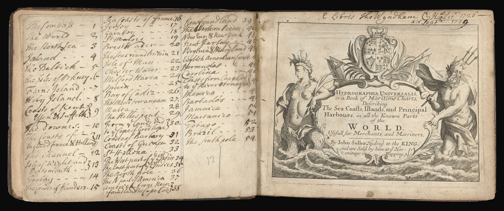 Following financial difficulties with his folio atlases, Seller turned to producing smaller format atlases which were less costly to publish, like for example the present work; 28 of the maps here were previously produced in Seller's 1682 Atlas Maritimus; but the present lot also has 3 maps not in either of the British Library copies of the Atlas Maritimus or this title (including one map of Newfoundland). This copy also has seven more maps than the British Library copy of Hydrographia Universalis. In fact of the four other known institutional examples, only the Codrington Library example bear as many maps as the present example.