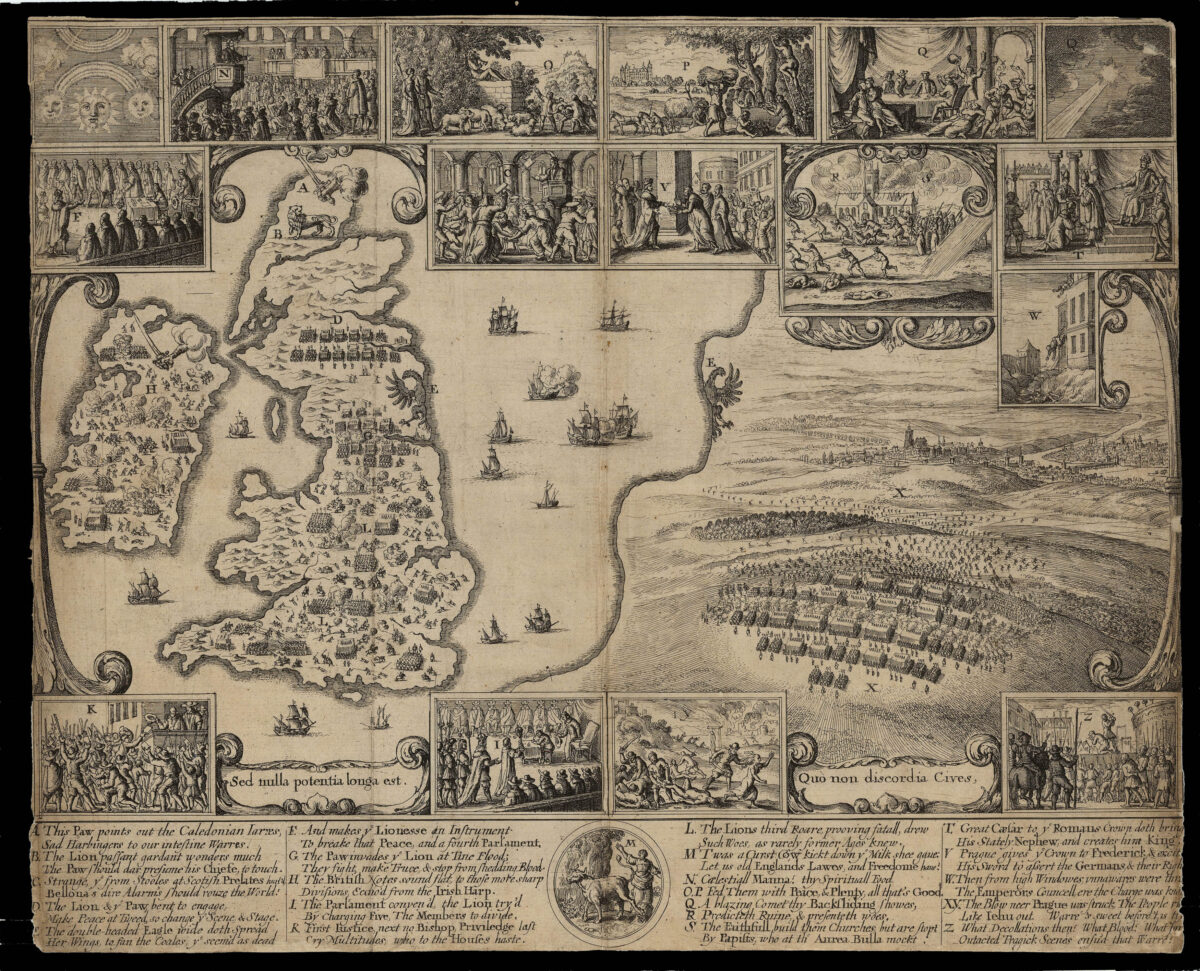 Hollar's detailed print is not simply a map of the British Isles but also a political commentary comparing the English Civil War and the Bohemian Civil War of a few decades earlier.