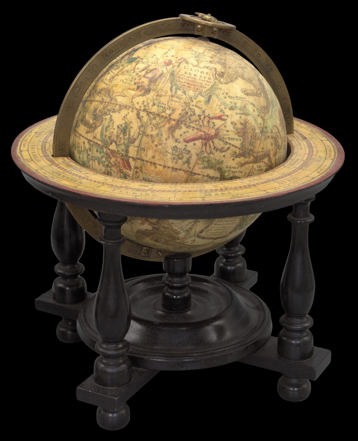 Jean Baptiste Delure (c1660-1736) was an editor and publisher of prints and maps, as well as an engineer of mathematical and scientific instruments. He also manufactured globes, but only two are recorded: the present celestial globe, and a terrestrial one of the same dimensions, produced in the same year. These were presumably designed as a pair.