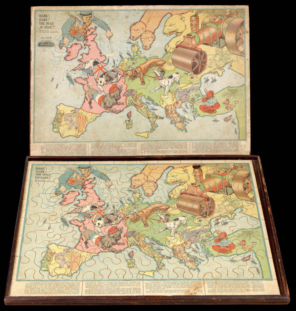 An humorous serio-comic map of Europe in jigsaw form, showing a satirical depiction of the beginning of the First World War.
