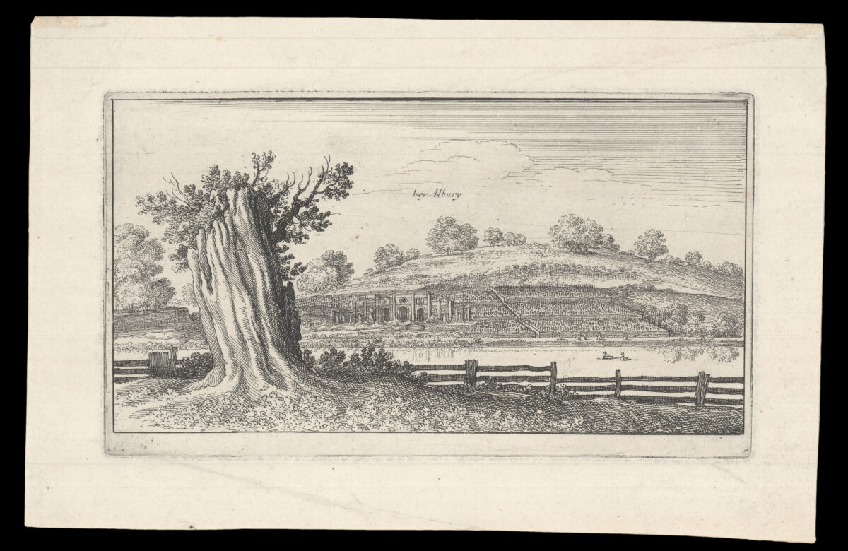 The small village of Albury in Surrey appears in the Domesday Book as Eldeberie, at which time its assets included one church, one mill, one acre of meadow and woodland worth 30 hogs. Albury Estate, which covers 150 acres of land, has a church that predates the Norman Invasion of England, and gardens designed by John Evelyn in the mid-seventeeth century. Interestingly the estate, which is by far Albury's most significant feature, does not appear on the six prints of the vil...