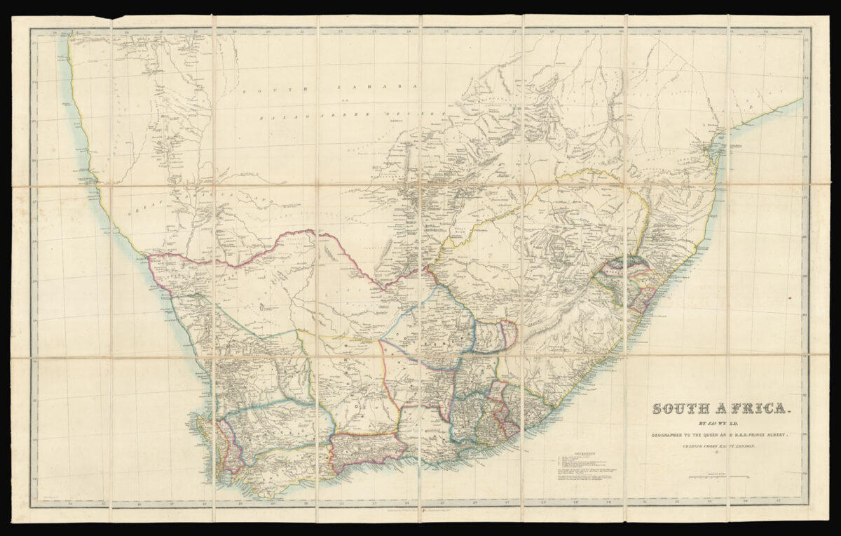 Wyld's map of South Africa can be seen in a similar context. The colour and capital letter system, used and explained in the references, functions as a way of depictin...