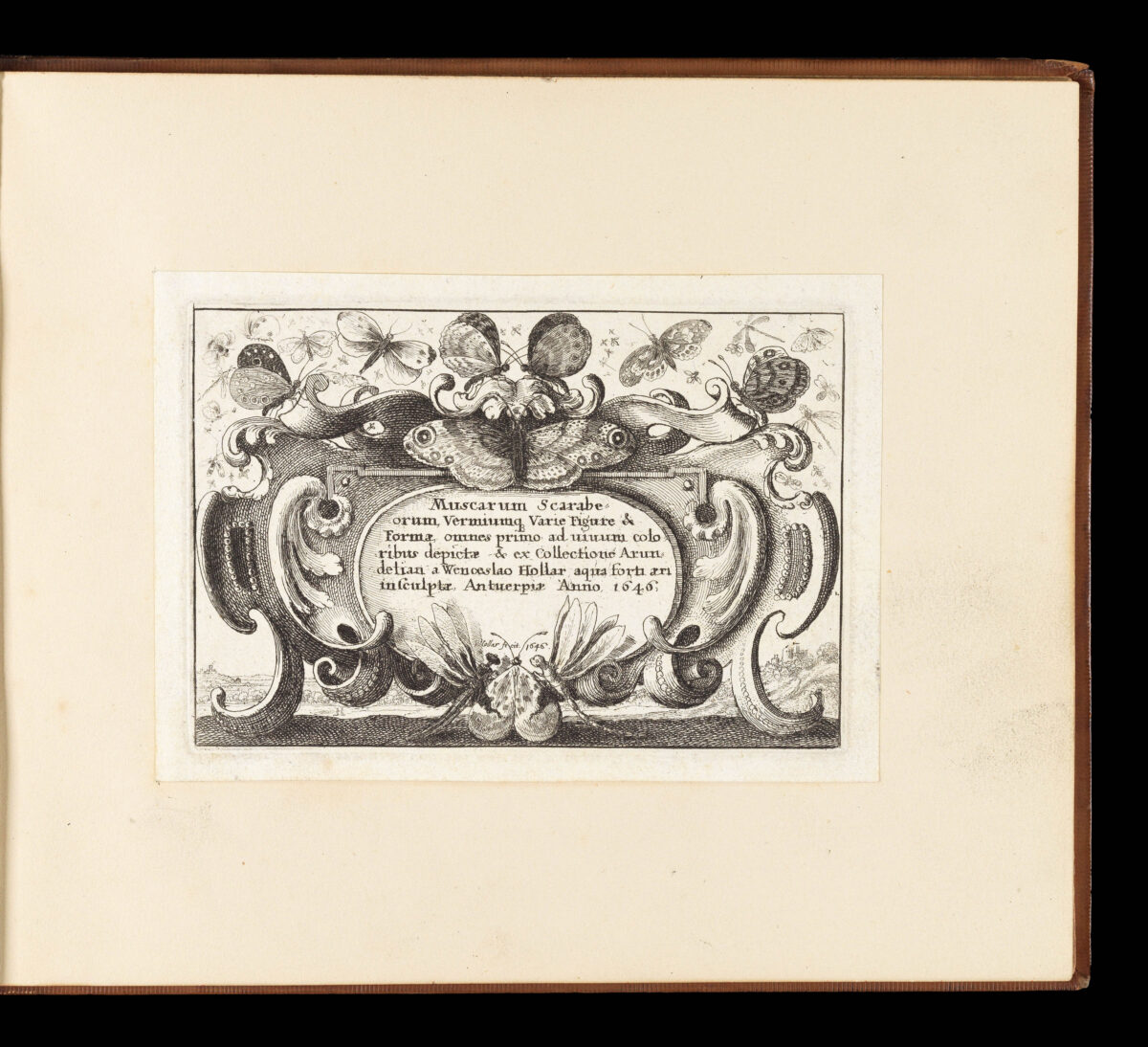 A complete set of uniformly brilliant impressions of this magnificent series of etchings, all in their first state. The decorative title shows an ornamental cartouche surrounded by insects, with the text inn an oval. The plates show, amongst others, grasshoppers, moths, butterflies, caterpillars, beetles, dragonflies, a bumble bee, and a wasp. They appear to be the first work executed by Hollar after his escape from Basing-House, when he at once adjourned to Antwerp, joinin...