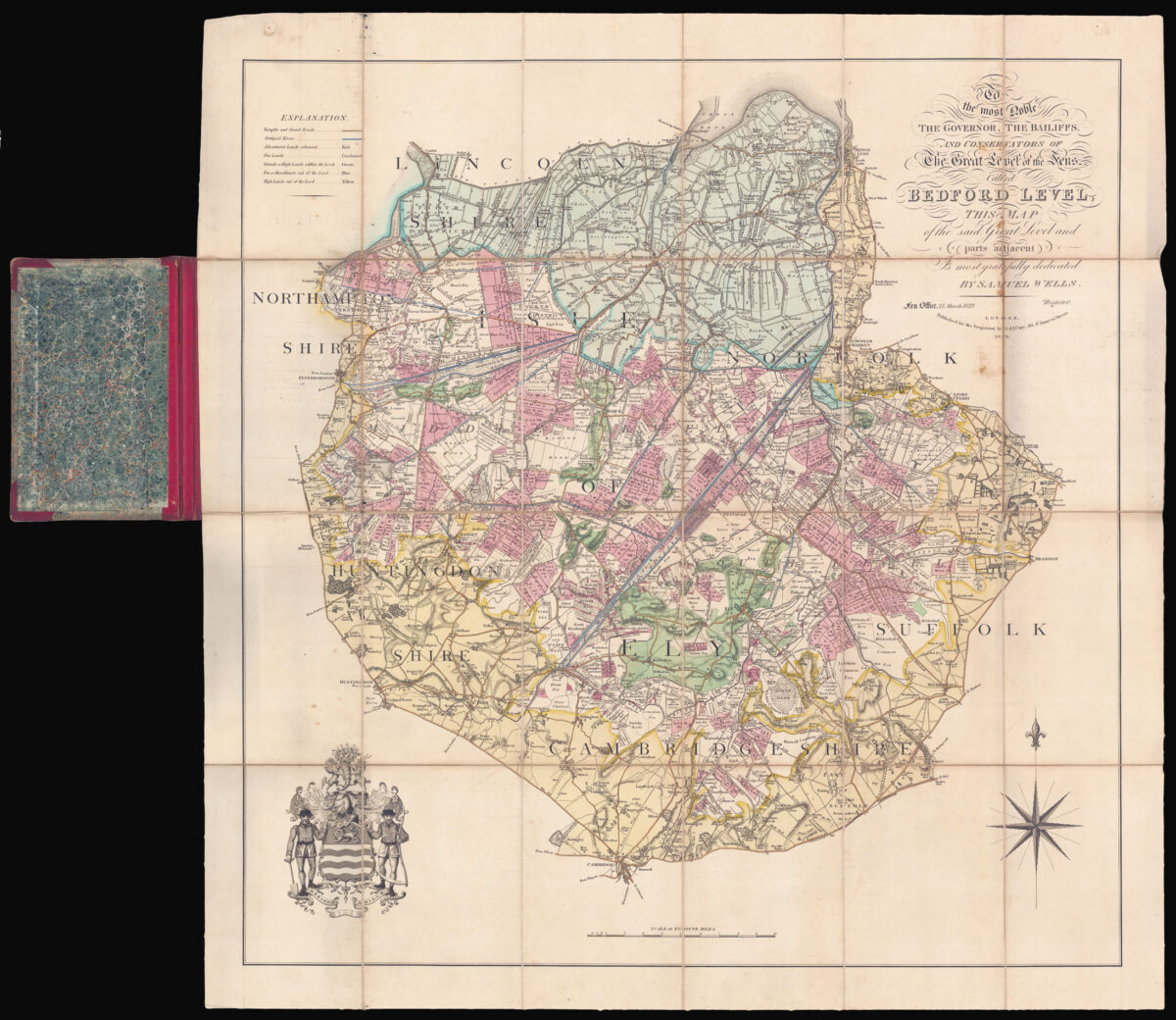 To the governor, the bailiffs and conservators of the great level of the Fens, called Bedford Level, this map of the said great level and parts adjacent is most gratefully dedicated by Samuel Wells, Register. Fen Office. 27th March 1829.